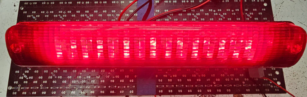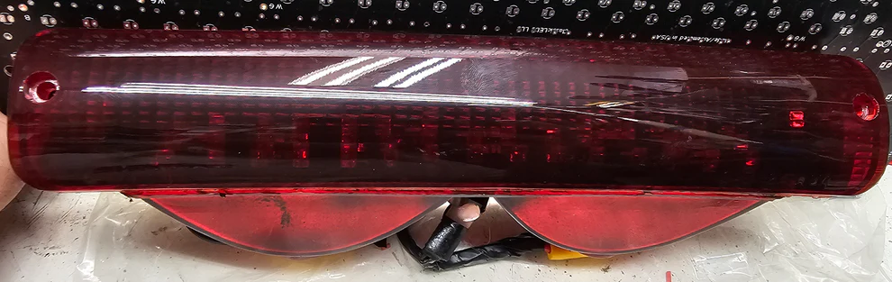 A new reproduction 3rd brake light housing/lens assembly with led insert. Stock plug and play replacement. Screws not included.